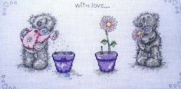 Bevat Aida wit 14 ct (5,5 kruisjes per cm), katoen draad, draadpalet, naald en eenvoudige instructies.