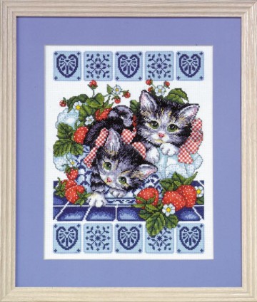 Bevat Aida wit 14 ct (5,5 kruisjes per cm), katoen draad, draadpalet, naald en eenvoudige instructies.