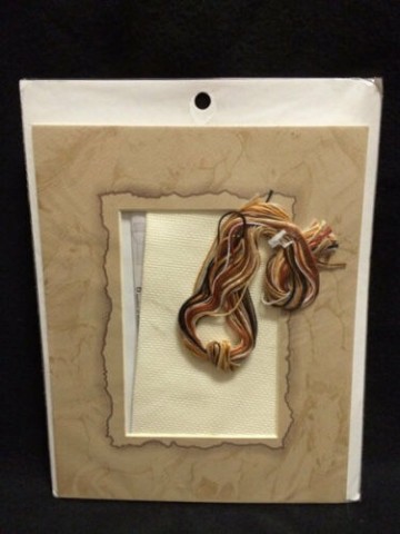 Bevat Aida ivoor 14 ct (5,5 kruisjes per cm), passe partout (20 x 25 cm), katoen draad, draadpalet, naald en eenvoudige instructies.