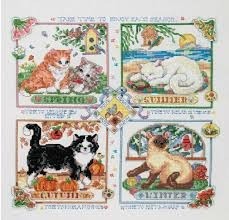 Janlynn 023-0151 borduurpakket Four Seasons Cats voorbedrukt.