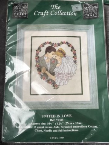Bevat Aida creme 14 ct (6,3 kruisjes per cm), katoen draad, draadpalet, naald en eenvoudige instructies.