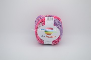 Honey (01) is een menging van katoen en acryl die in kleur verloopt. Door de samenstelling is dit garen perfect voor het maken van kledingstukken. Het garen pluist niet en blijft mooi in model. Door de twijning van de draad splijt het niet bij het haken en geeft een touch van fluweel.
