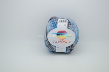 Honey (05) is een menging van katoen en acryl die in kleur verloopt. Door de samenstelling is dit garen perfect voor het maken van kledingstukken. Het garen pluist niet en blijft mooi in model. Door de twijning van de draad splijt het niet bij het haken en geeft een touch van fluweel.