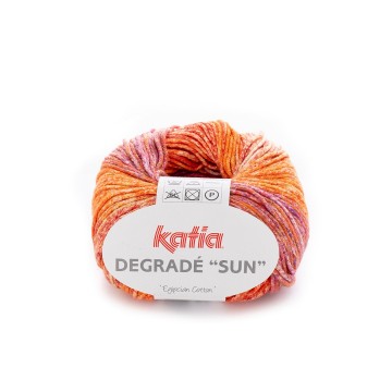 Katia Degradé Sun (203) is een mooie in kleurverlopende Egyptische katoen in frisse zomerkleuren. Deze katoen is super leuk om zomerse kledingstukken te maken.