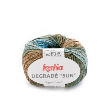 Katia Degradé Sun (202) is een mooie in kleurverlopende Egyptische katoen in frisse zomerkleuren. Deze katoen is super leuk om zomerse kledingstukken te maken.